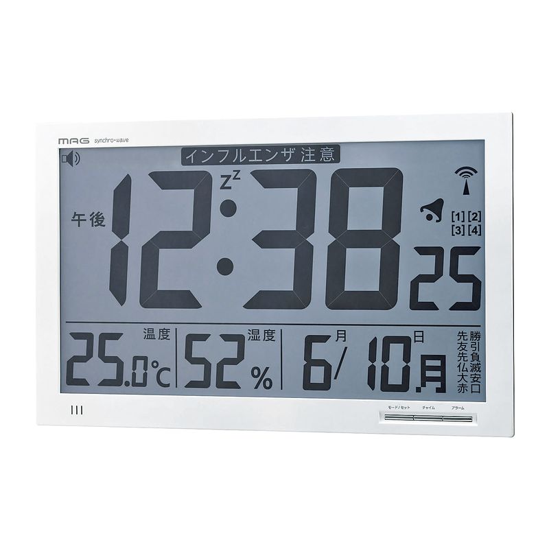 マグ 大型デジタル置掛兼用 電波時計 エアサーチメルスター W-602WH