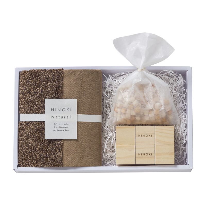 ヒノキキューブ&今治ハンカチセット HB-201 BR