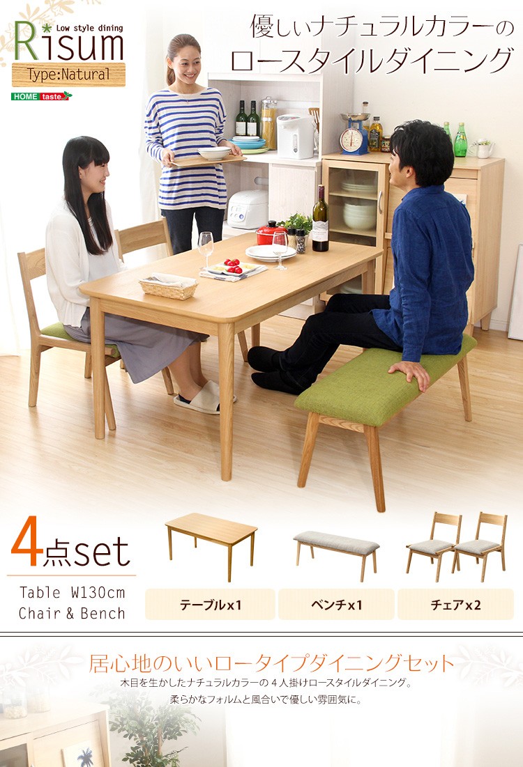 ダイニング4点セット(テーブル+チェア2脚+ベンチ)ナチュラルロータイプ 木製アッシュ材|Risum-リスム-