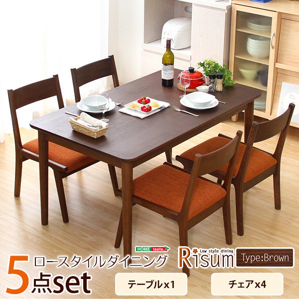 ダイニング5点セット(テーブル+チェア4脚)ナチュラルロータイプ ブラウン 木製アッシュ材|Risum-リスム-