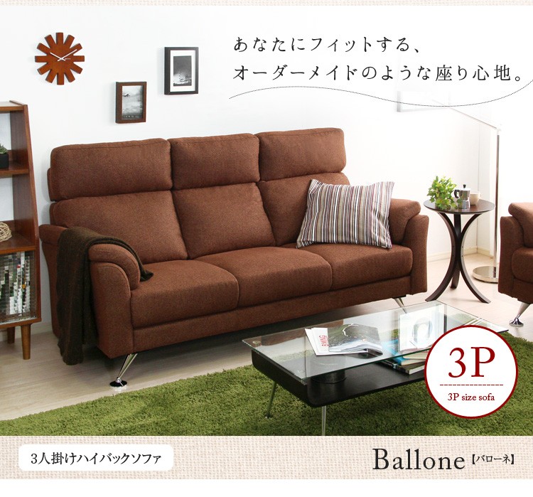 3人掛けハイバックデザインソファ【Ballone-バローネ-】(ハイバック 3人掛け ポケットコイル)