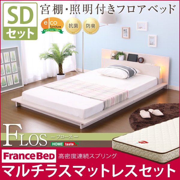 宮、照明、コンセント付きフロアベッド【フロース-FLOS-(セミダブル)】(マルチラススーパースプリングマットレス付き)