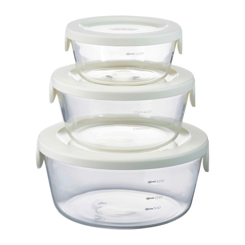 ハリオ 耐熱ガラス製保存容器 丸 3個セット SYTN-2518-OW オフホワイト