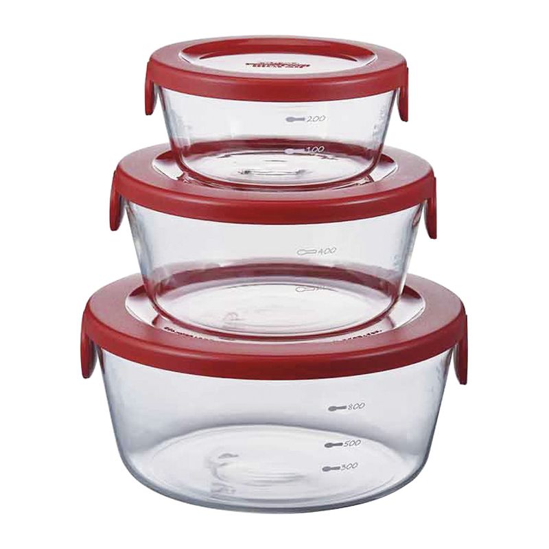 ハリオ 耐熱ガラス製保存容器 丸 3個セット SYTN-2518-R レッド