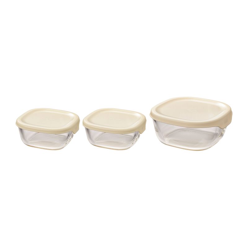 ハリオ 耐熱ガラス製保存容器 角 3個セット KST-2012-OW オフホワイト