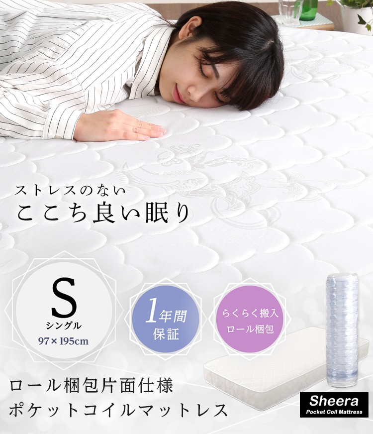 ロール梱包片面仕様ポケットコイルマットレス【Sheera-シェエラ-】シングルサイズ