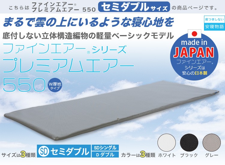 【日本製】ファインエアー(R)シリーズ【プレミアムエアー(スタンダード550[W厚地タイプ])セミダブル】