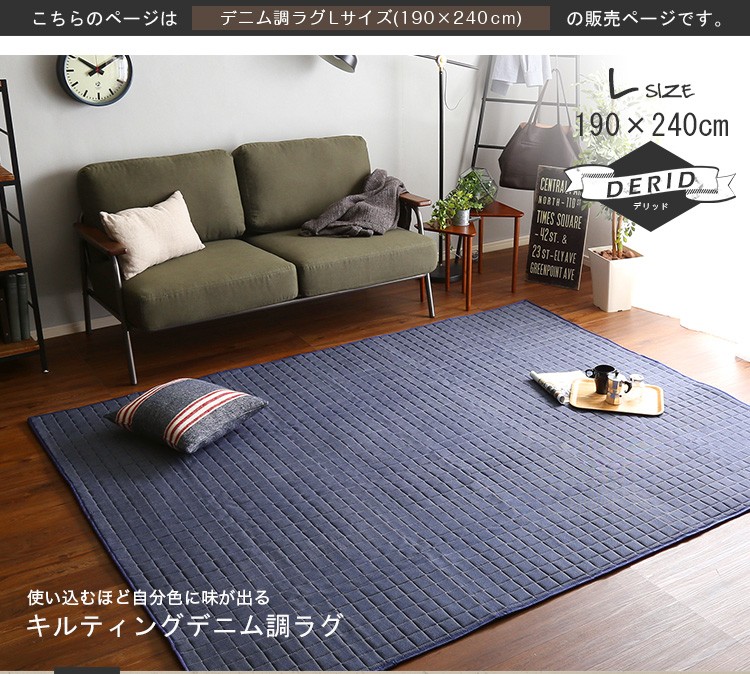 キルティングデニム調ラグLサイズ(190x240cm)オールシーズン、滑り止め付き、手洗い対応【Derid-デリッド-】