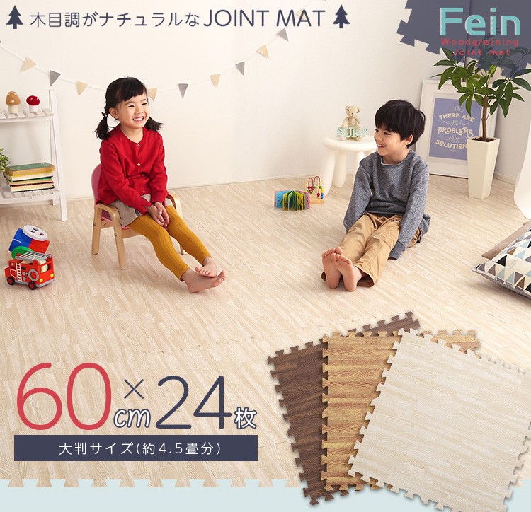 サイドパーツ付き!ナチュラルな木目調ジョイントマット 24枚セット(大判60cm)安心の低ホルムアルデヒド、防音、保温【Fein-ファイン-】
