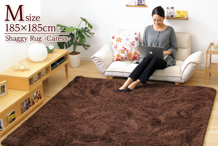 (185×185cm)マイクロファイバーシャギーラグマット【Caress-カレス-(Mサイズ)】