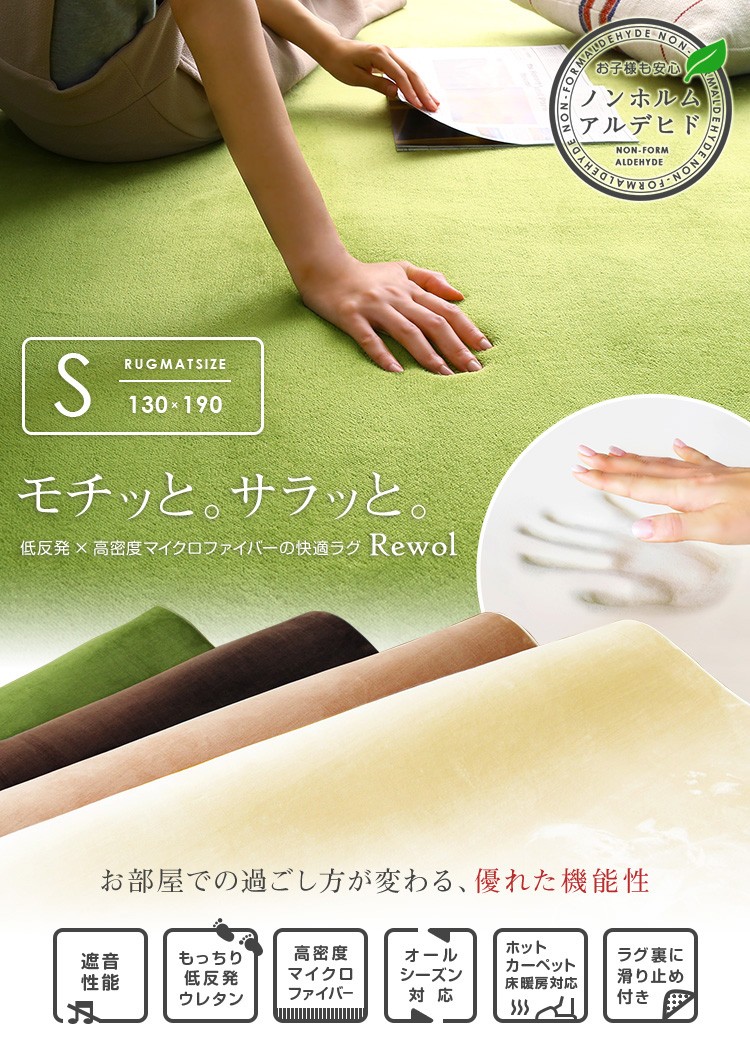 高密度マイクロファイバー・低反発ラグマットSサイズ(130×190cm)お子様も安心|リウル