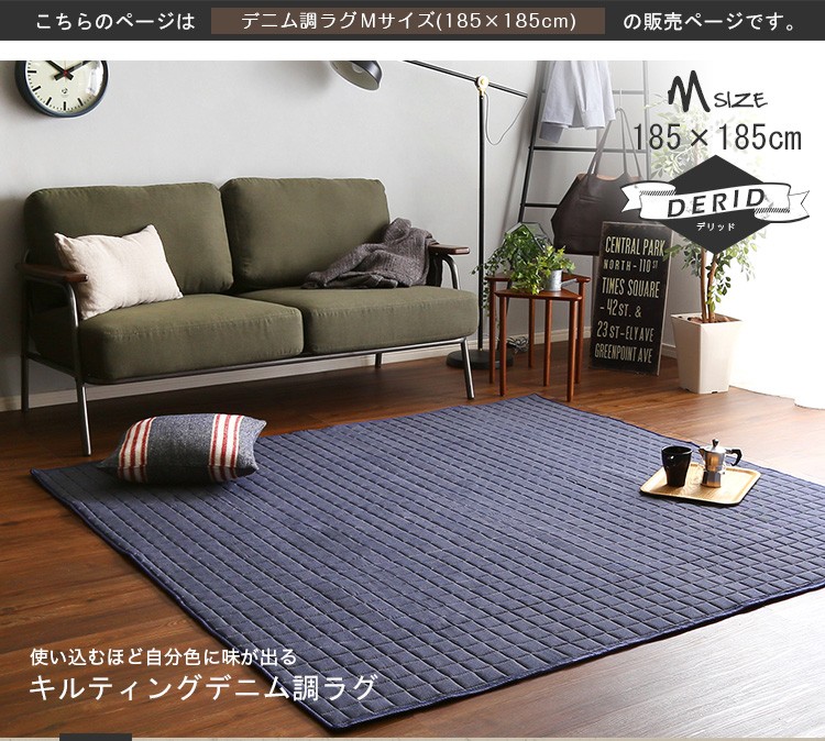 キルティングデニム調ラグMサイズ(185x185cm)オールシーズン、滑り止め付き、手洗い対応【Derid-デリッド-】