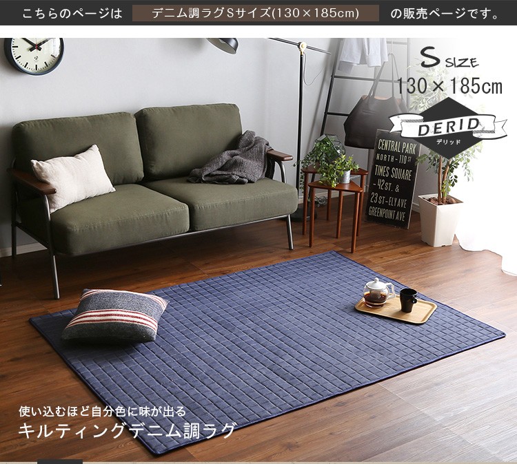 キルティングデニム調ラグSサイズ(130x185cm)オールシーズン、滑り止め付き、手洗い対応【Derid-デリッド-】