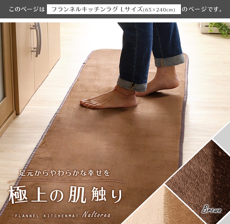 高密度フランネルマイクロファイバー・キッチンマットLサイズ(65×240cm)洗えるラグマット【Naltorea-ナルトレア-】