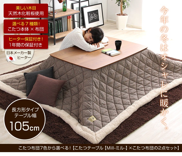 ウォールナットの天然木化粧板こたつ布団セット(7柄)日本メーカー製|Mill-ミル-