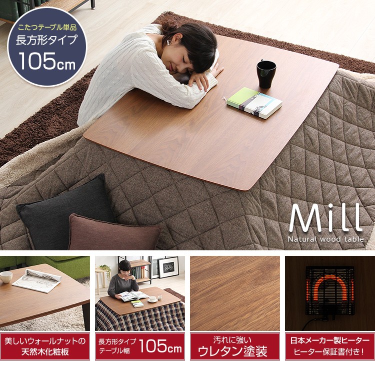 ウォールナットの天然木化粧板こたつテーブル日本メーカー製|Mill-ミル-(105cm幅・長方形)