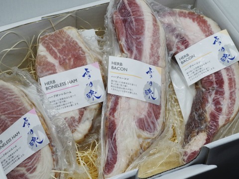 【ギフト商品】発酵食品を食べて育った豚「雪乃醸」ベーコン+ハム【セット】